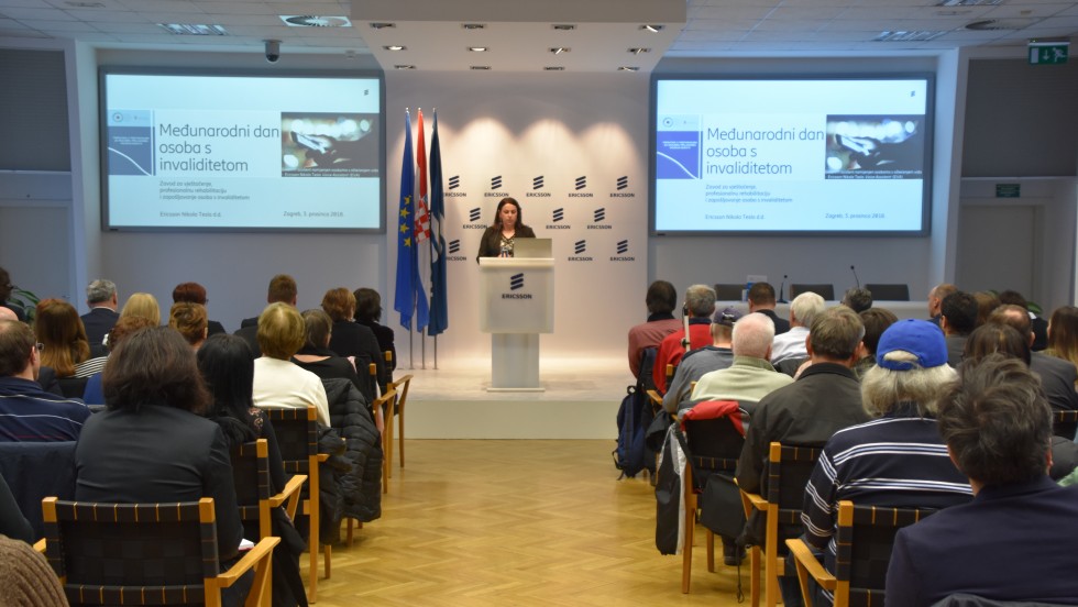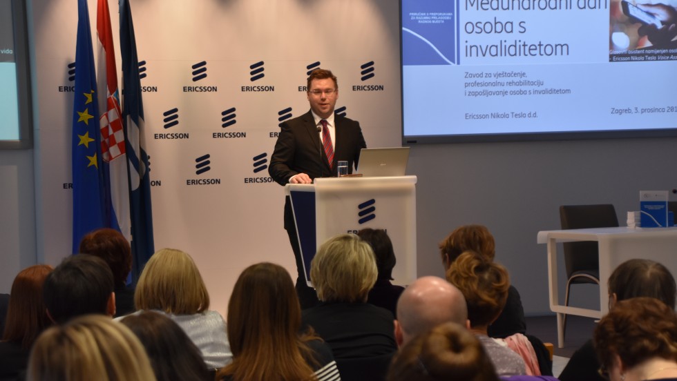 U dvorani Ericsson Nikola Tesla danas je predstavljen Priručnik s preporukama za razumnu prilagodbu radnog mjesta Zavoda za vještačenje, profesionalnu rehabilitaciju i zapošljavanje osoba s invaliditetom i aplikacija EVA – Ericsson Nikola Tesla Voice Assistant.
